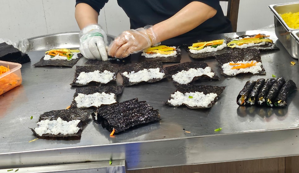 계속해서 김밥을 만드는 고수의 손길